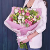 Эти бесподобные цветы  имеют несколько названий – эустома, лизиантус, а еще - ирландская роза. Цветы действительно имеют сходство с розой, выглядят очень привлекательно и заманчиво! В этом букете они представлены в двух оттенках – розовом и белом. В такой цветовой гамме композиция выглядит гармонично и красиво!